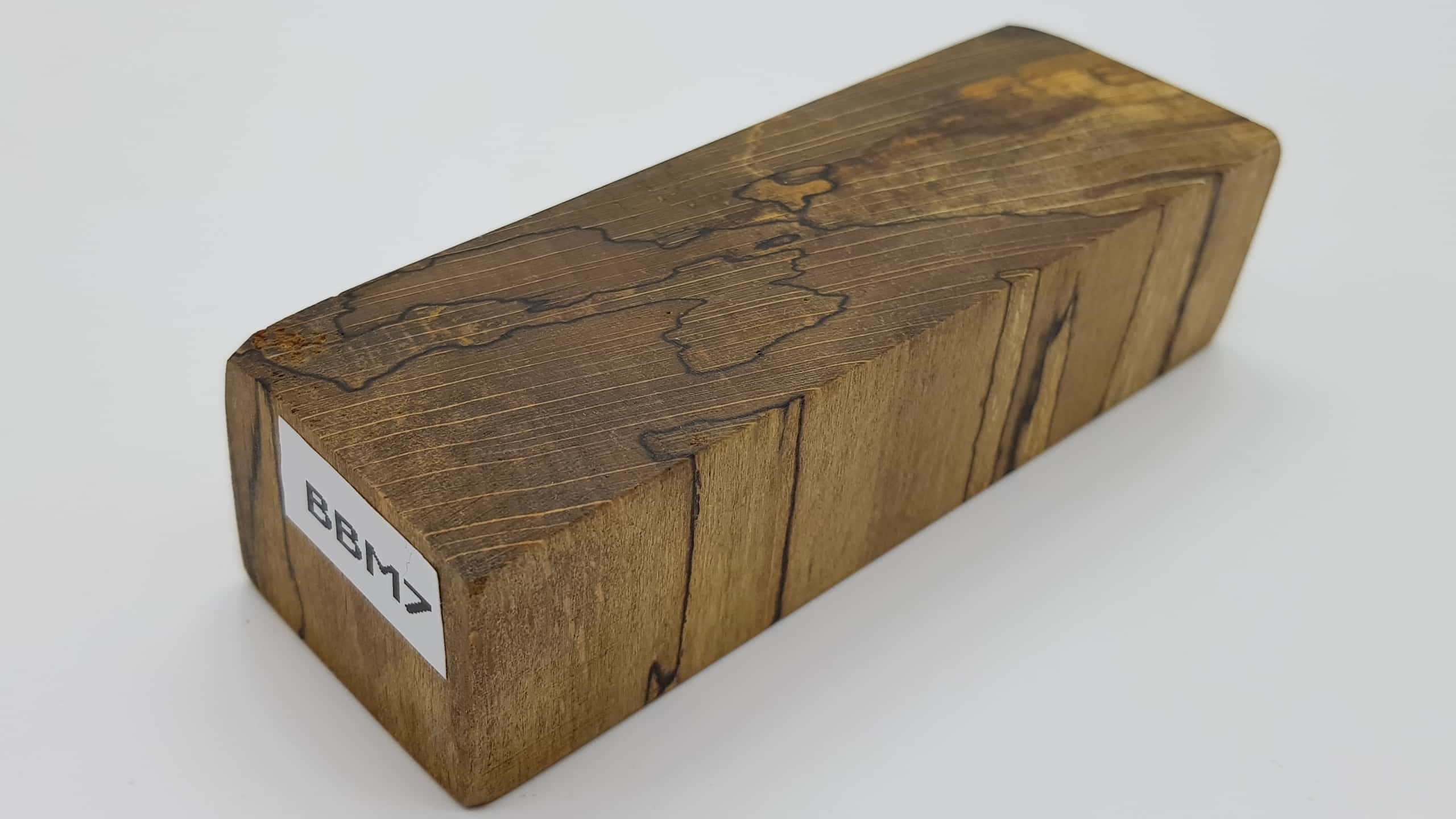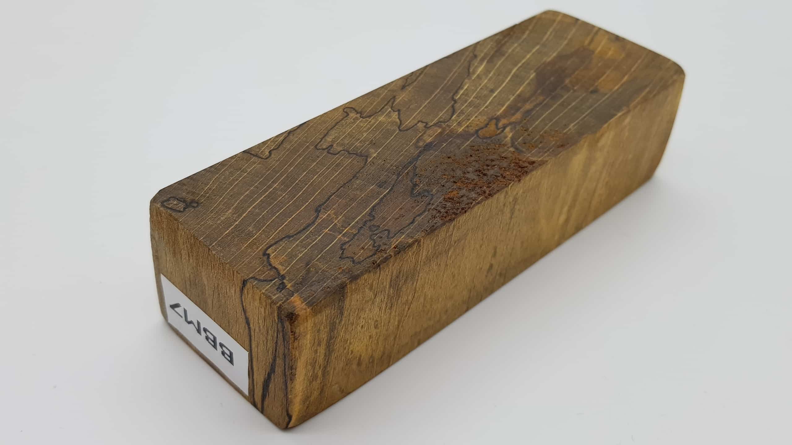 BBM07 Buche C-Cut gestockt braun stabilisiert, Maße 40mm x 30mm x 119mm. Um die Farbe und Struktur schön zu erkennen wurde die Oberfläche mit einer dünnen Schicht Schellack überzogen. Beim Kauf erhalten Sie das abgebildete Stück.