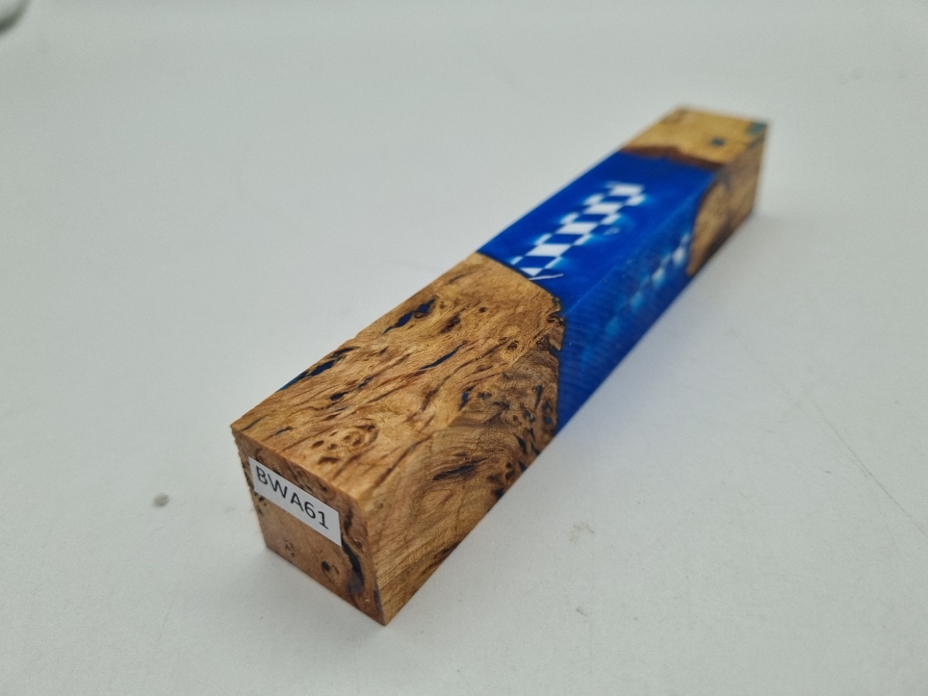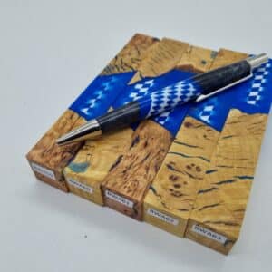 BWA61 Kastanie Maserknolle Bayernwappen 20mm x 20mm x 125mm. Das Holz wurde vor dem Giesen stabilisiert. Die Rauten sind geeignet für Stifte, den die sind rund gedruckt. Das Loch für die Hülsen muss genau in der Mitte gebohrt werden. Der Stift sollte auch nicht dünner als 13 oder 14mm gedrechselt werden. Für eine perfekte Oberfläche finden Sie auch gutes Material hier im Shop. Der Stift auf dem Bild dient nur als Muster. Beim Kauf erhalten Sie das abgebildete Stück.
