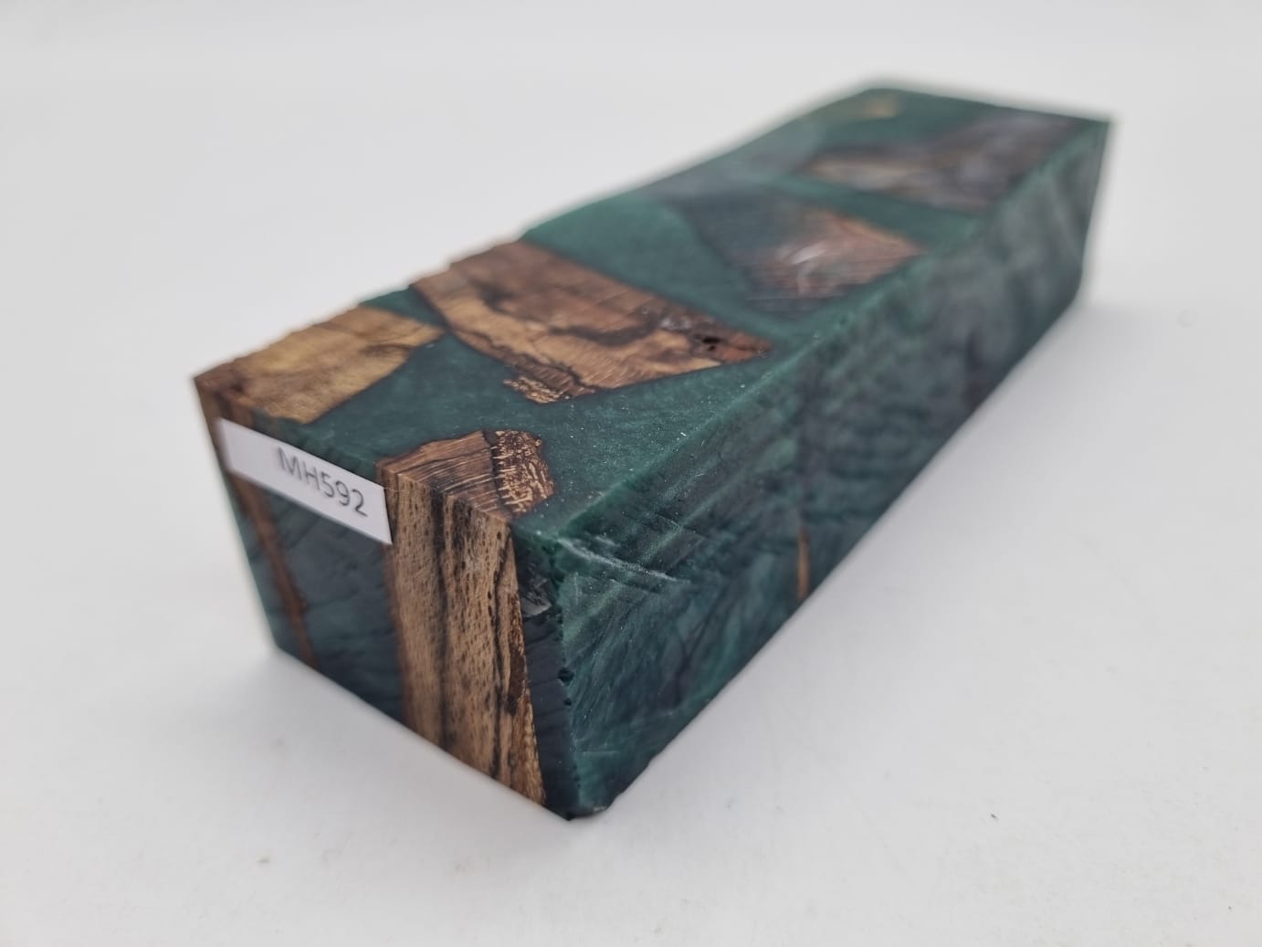Griffblock MH592 stabilisierte Holzreste grün 40mm x 30mm x 135mm. Es handelt sich um stabilisierte Holzreste. Geeignet für Messergriff oder auch zum Drechseln. Geeignete Stiftebausätze, Klebstoffe und gutes Material für die Oberfläche sind auch hier im Shop erhältlich. Beim Kauf erhalten Sie das abgebildete Stück.