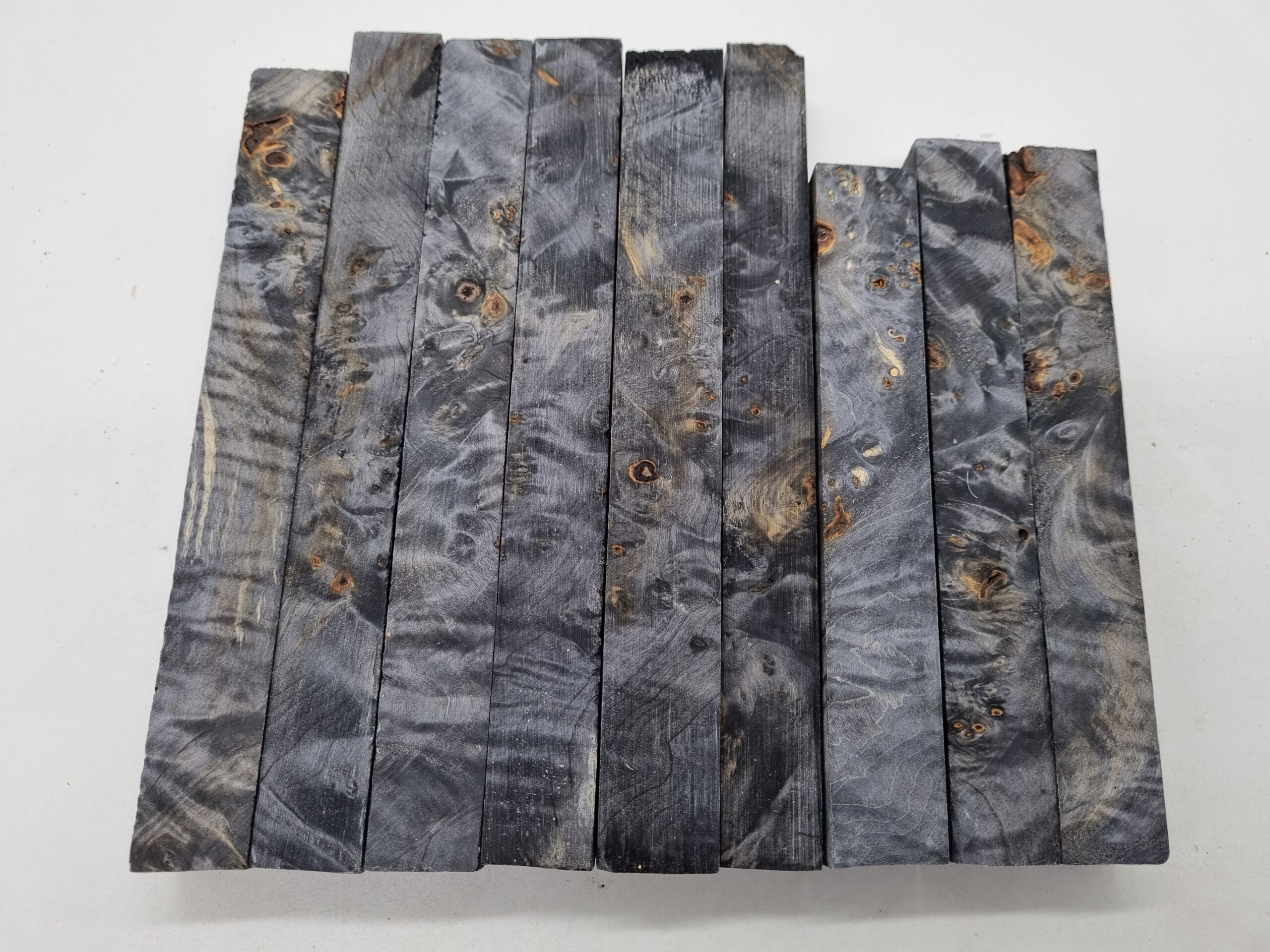 Kastanie Maser schwarz stabilisiert 20mm x 20mm x 120mm. Es können kleine Löcher durch Einwüchse vorhanden sein. Diese lassen sich leicht durch Kleber und Schleifstaub verschließen. Beim Kauf erhalten Sie ein Stück ähnlich in Farbe uns Struktur. Passende Stiftebausätze und Material für eine perfekte Oberfläche ist auch hier im Shop erhältlich.