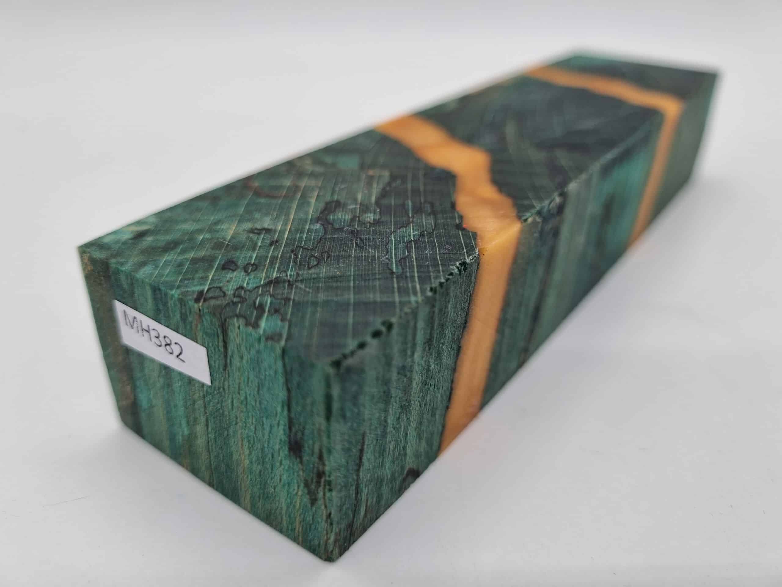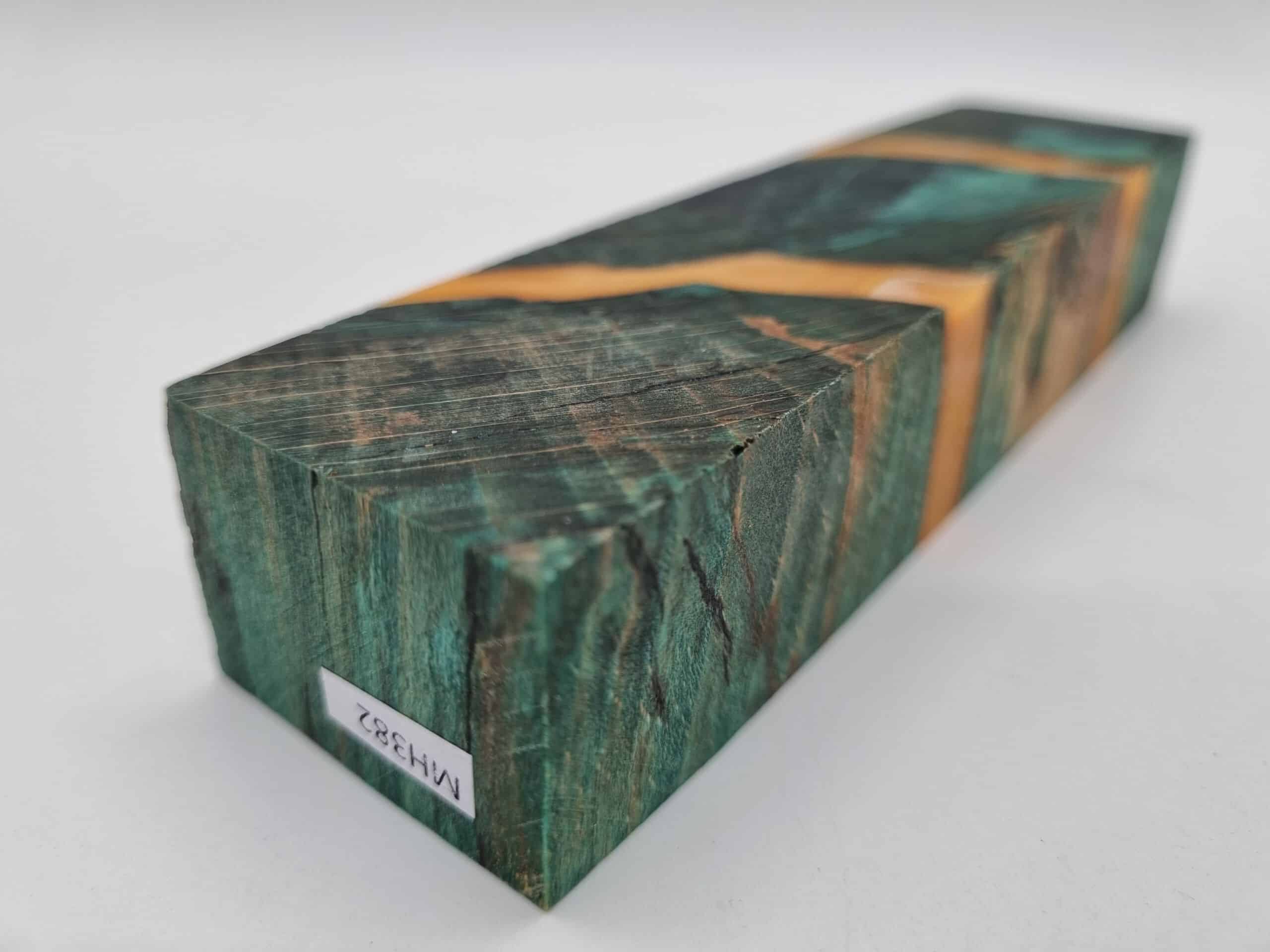 MH382 Buche gestockt c-cut grün gold orange 39mm x 28mm x 150mm. Das Holz wurde vor dem gießen grün stabilisiert. Kleine Risse wurden mit goldfarbigen Harz vergossen. Für ein perfektes Finish finden Sie hier gutes Material. Beim Kauf erhalten Sie das abgebildete Stück.