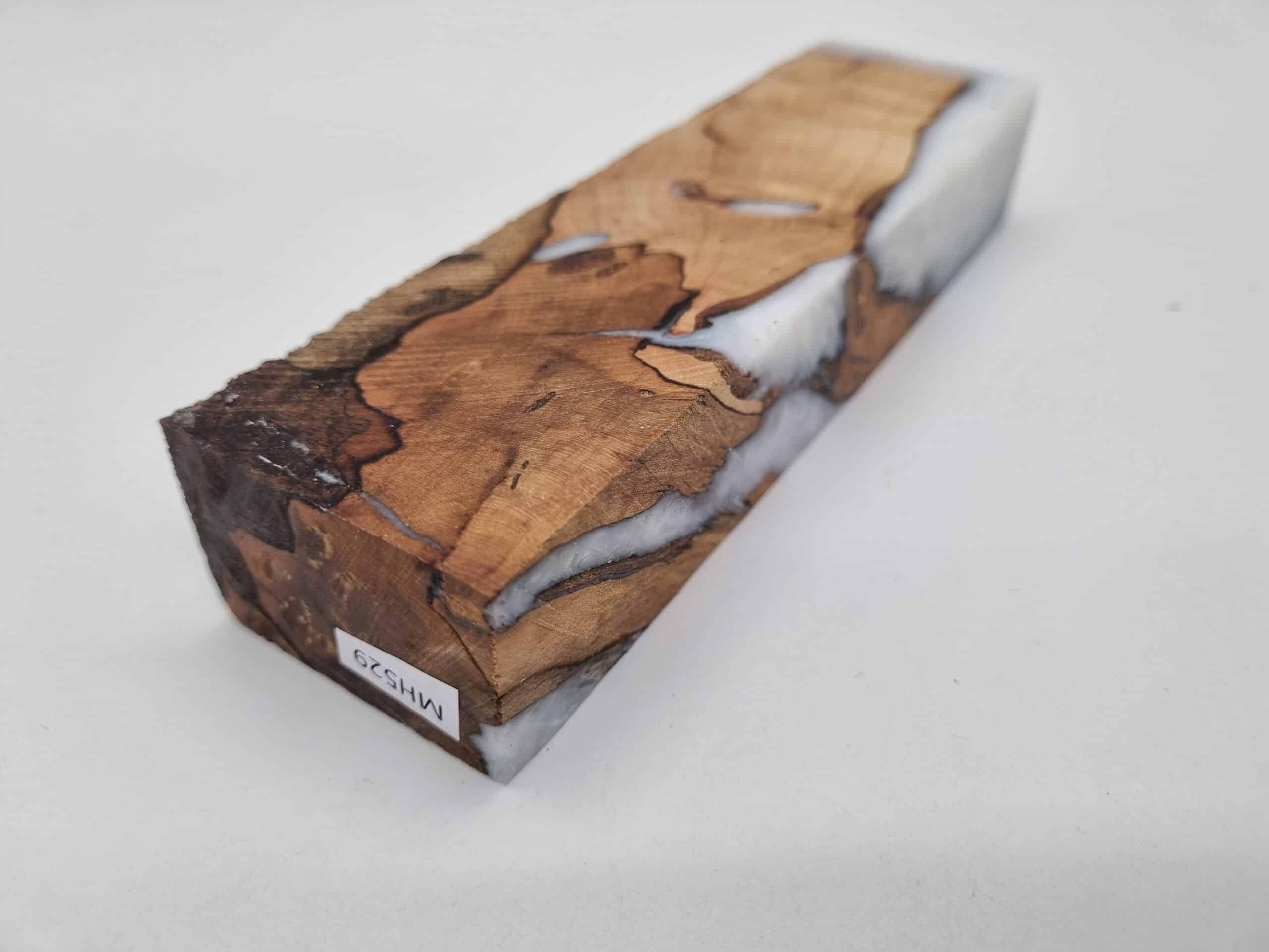 MH529 Griffblock Quitte gestockt stabilisiert weiß 45mm x 28mm x 160mm. Das Holz wurde vor dem Gießen stabilisiert.  Schleif-, Poliermittel und Finish ist auch hier erhältlich. Beim Kauf erhalten Sie ein abgebildetes Stück.
