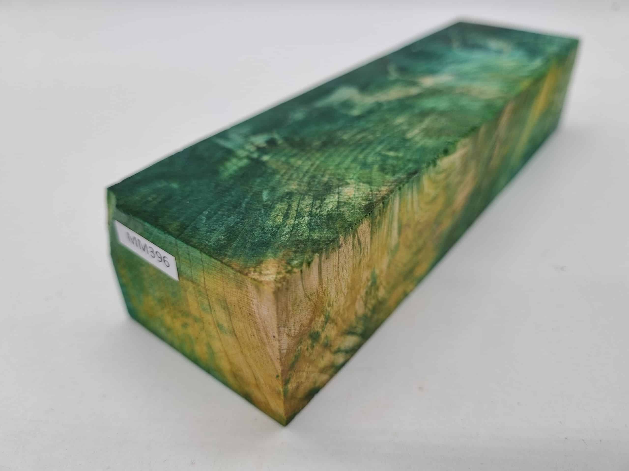 MM396 Griffblock Kastanien grün gelb stabilisiert 45mm x 32mm x 160mm. Schleif-, Poliermittel und Finish ist auch hier erhältlich. Beim Kauf erhalten Sie exakt das abgebildete Stück.