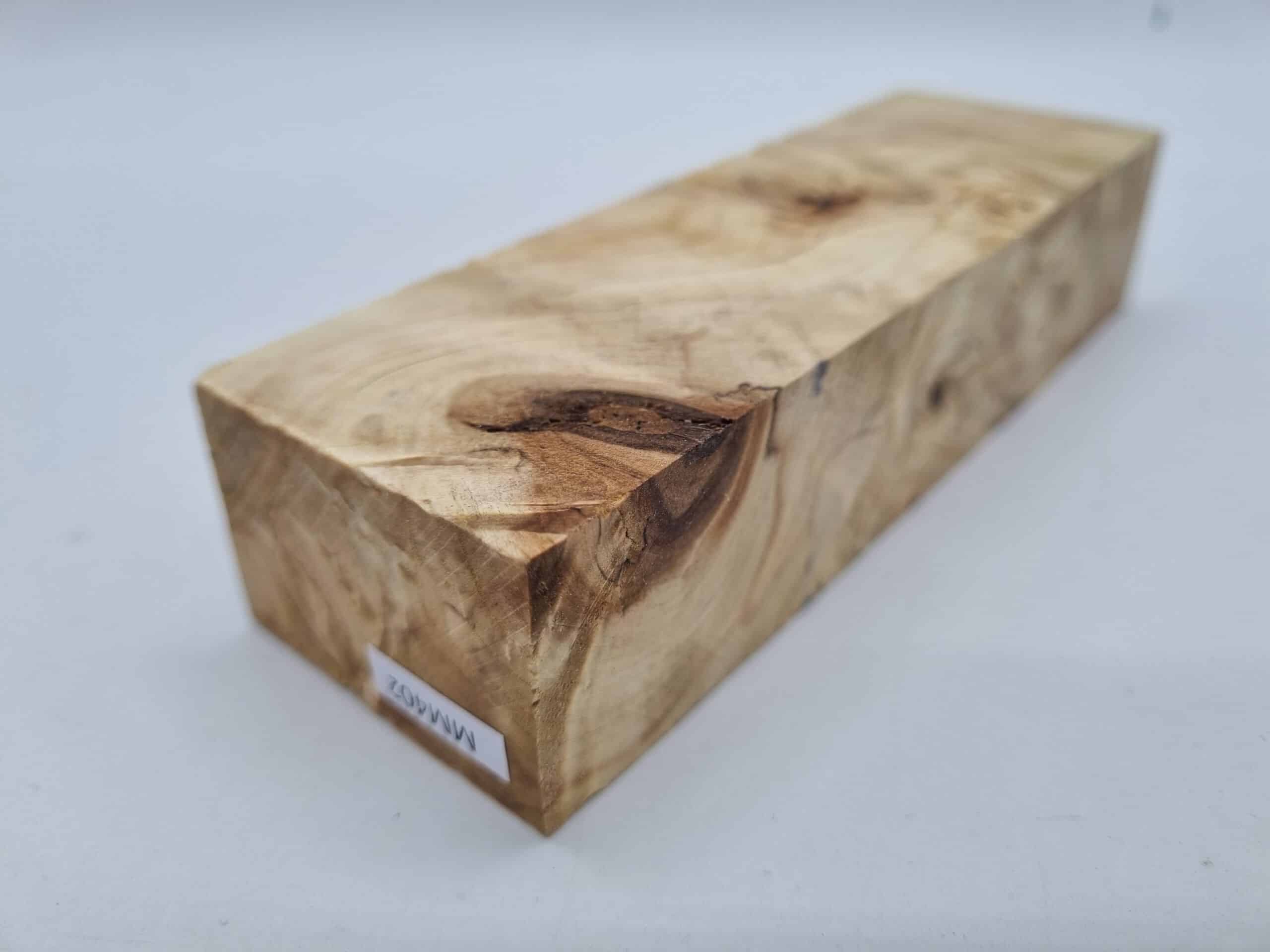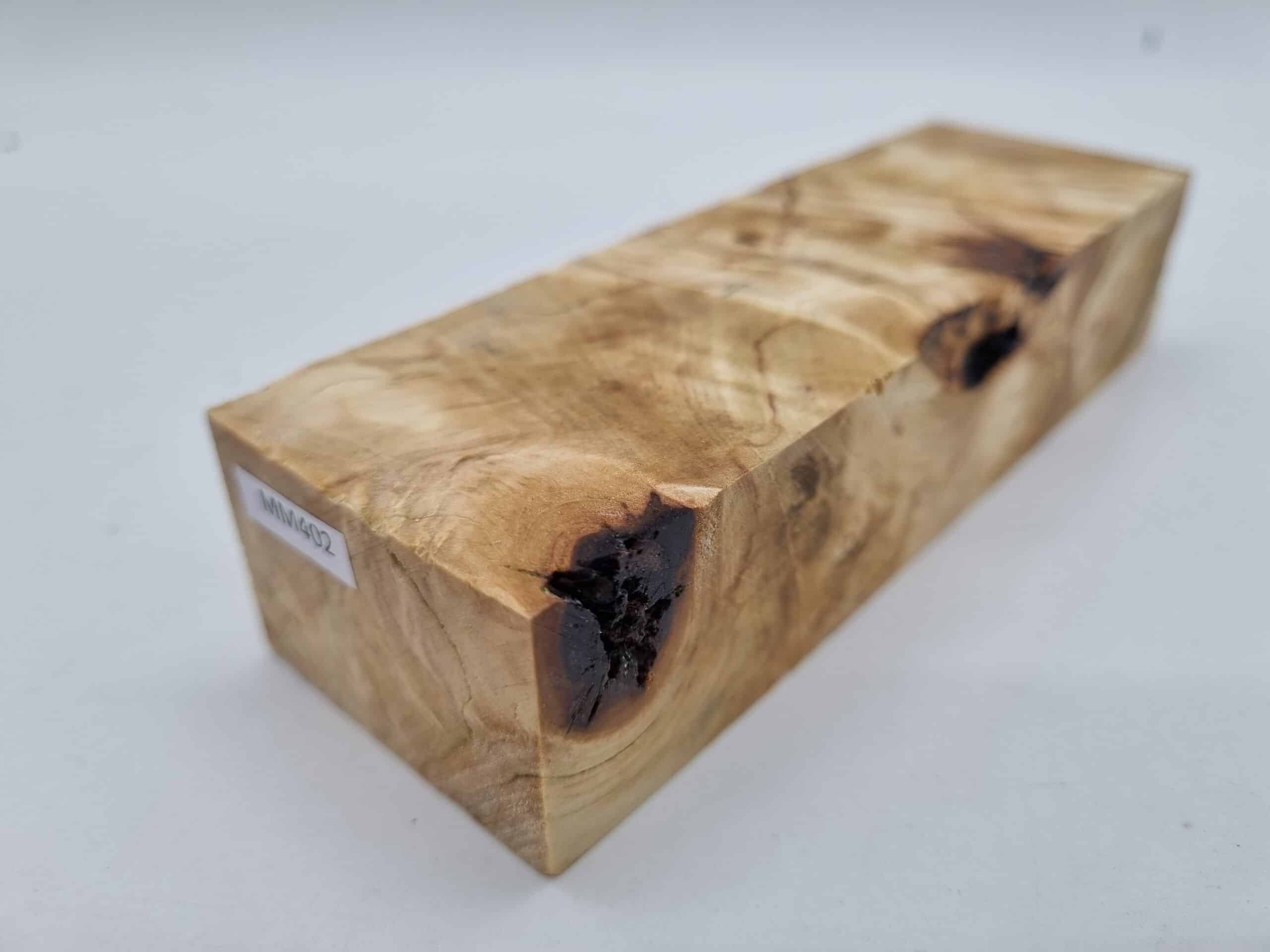 MM402 Griffblock Kastanienknolle stabilisiert 45mm x 30mm x 135mm. Holz aus einer Knolle können Fehlstellen wie offene Maseraugen, Rindeneinwachsungen oder wuchstypische Risse enthalten. Diese kann man aber mit CA Kleber und Schleifstaub leicht füllen. Schleif-, Poliermittel und Finish ist auch hier erhältlich. Beim Kauf erhalten Sie exakt das abgebildete Stück.