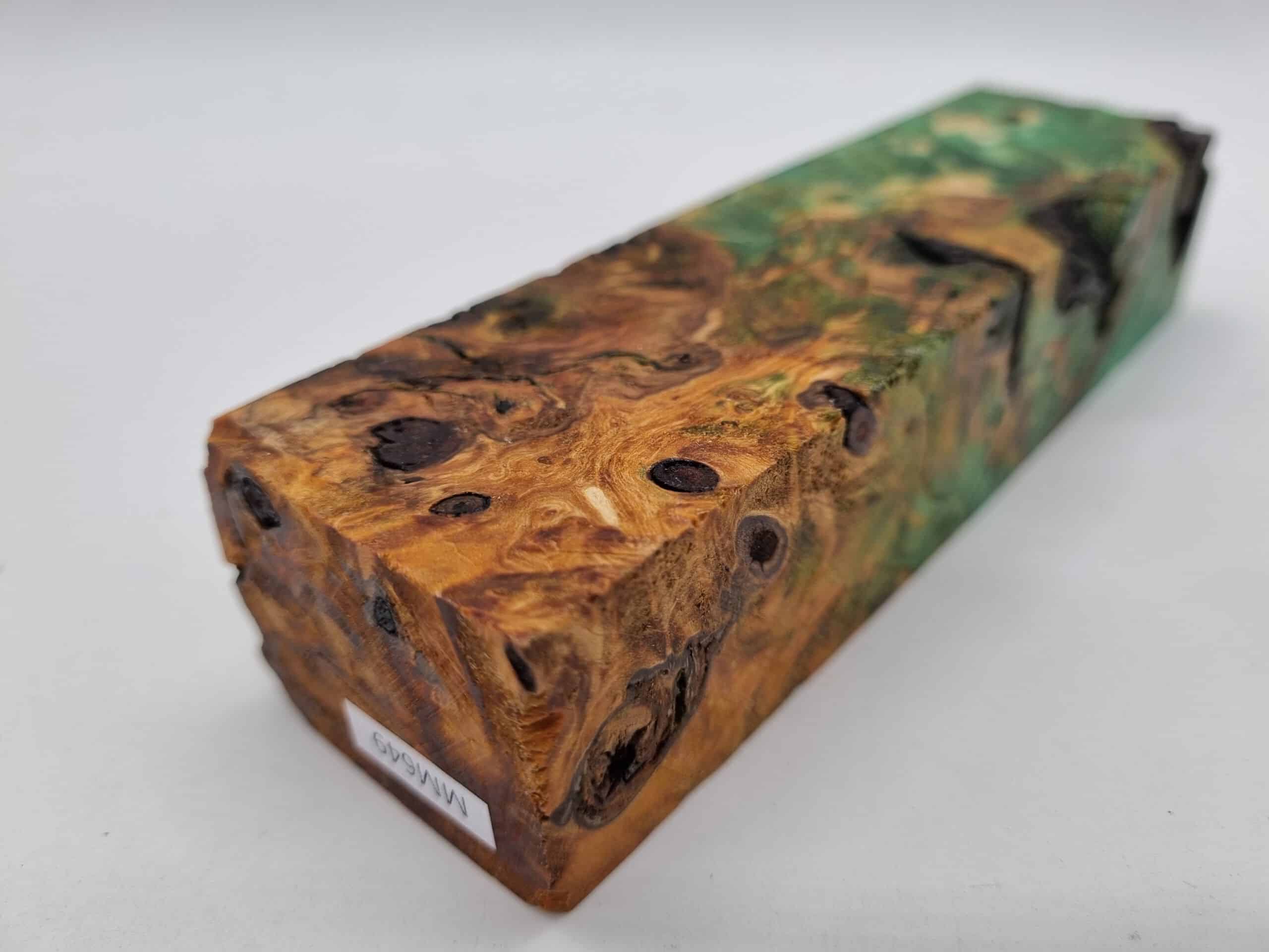MM649 Griffblock Kastanienknolle grün bernstein stabilisiert 42mm x 30mm x 150mm