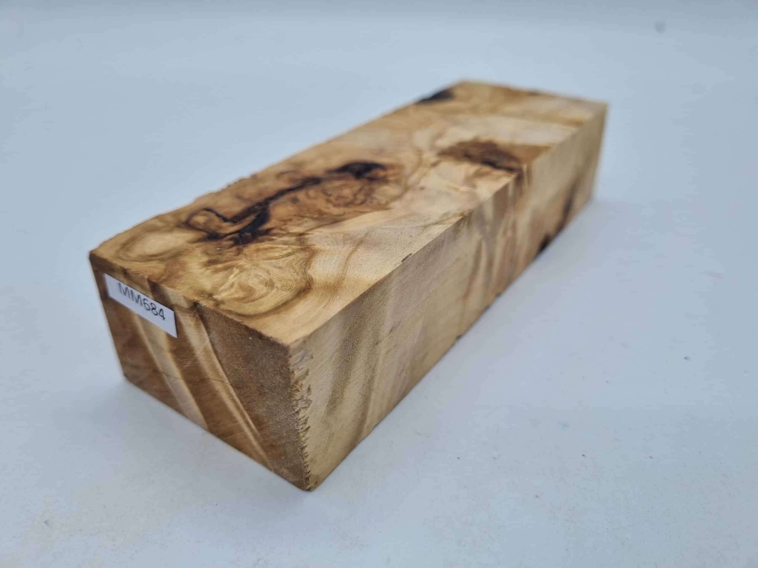 MM684 Griffblock Kastanienknolle stabilisiert 50mm x 30mm x 140mm. Holz aus einer Knolle können Fehlstellen wie offene Maseraugen, Rindeneinwachsungen oder wuchstypische Risse enthalten. Diese kann man aber mit CA Kleber und Schleifstaub leicht füllen. Schleif-, Poliermittel und Finish ist auch hier erhältlich. Beim Kauf erhalten Sie exakt das abgebildete Stück.