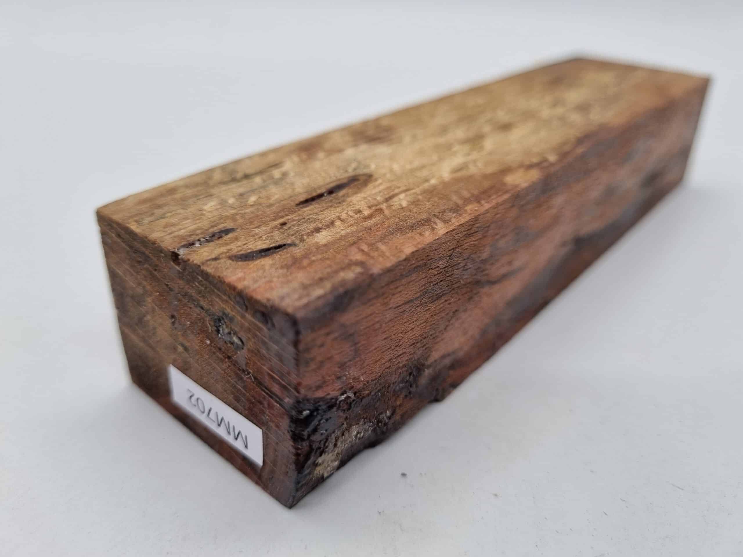 MM702 Buche gestockt stabilisiert 39mm x 29mm x 150mm. Um die Farbe und Struktur schön zu erkennen wurde die Oberfläche mit einer dünnen Schicht Schellack überzogen. Für die Perfekte Oberfläche finden Sie hier auch gutes Material. Beim Kauf erhalten Sie das abgebildete Stück.