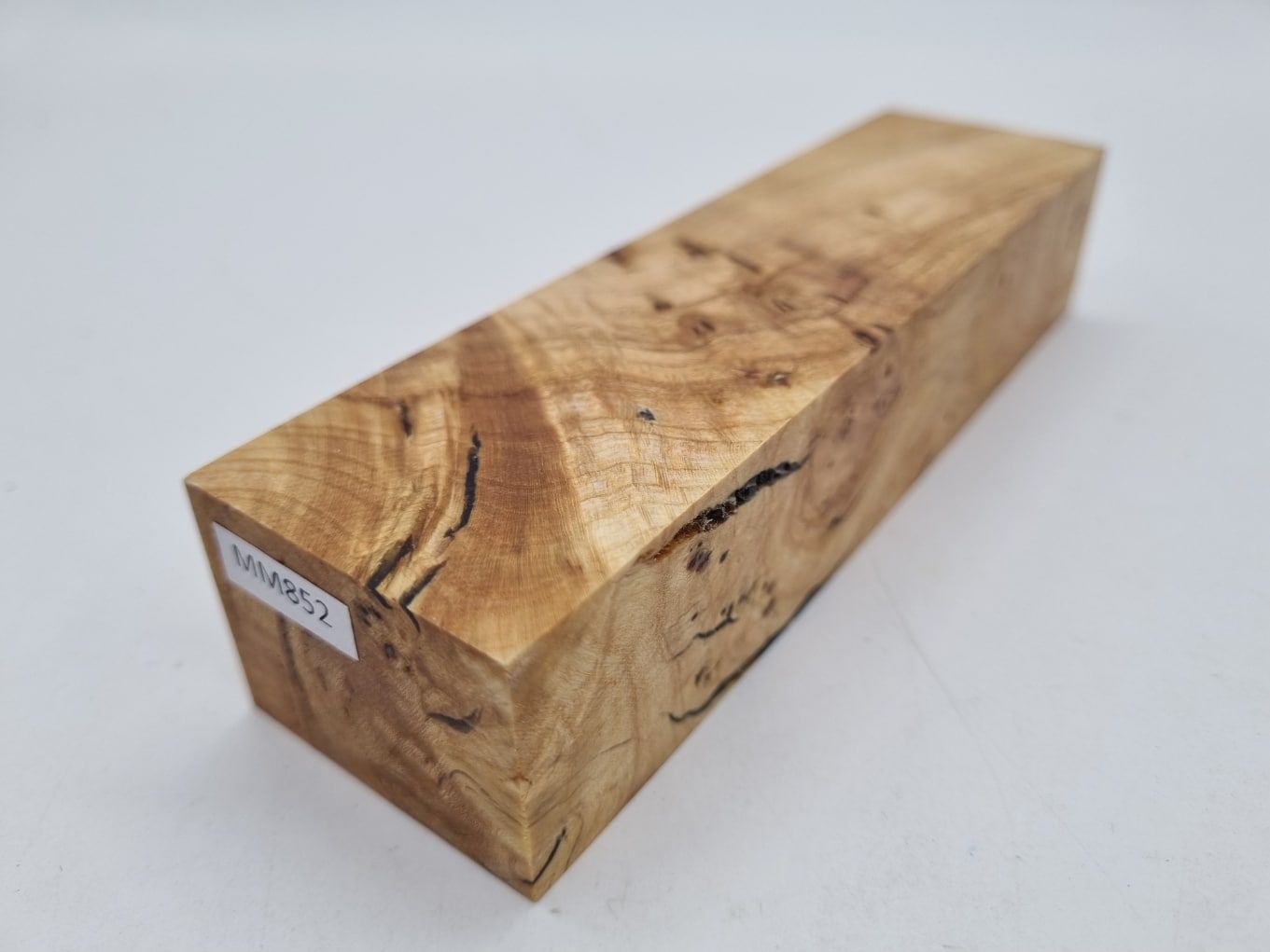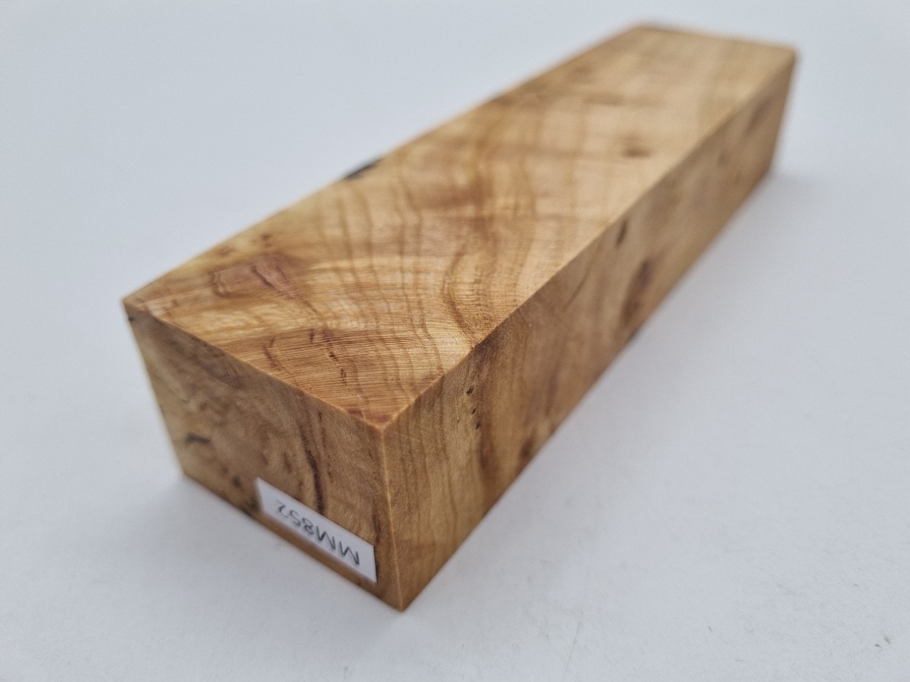 MM852 Griffblock Kirschknolle 40mm x 30mm x 145mm. Das Holz ist stabilisiert. Es sind Risse mit schwarzem Epoxidharz gefüllt. Das Holz kann trotzdem noch Einschlüße haben, sowie auch kleine Risse haben. Die können aber mit CA Kleber und Schleifstaub gefüllt werden. Für eine perfekte Oberfläche finden Sie auch gutes Material hier im Shop. Beim Kauf erhalten Sie das abgebildete Stück.