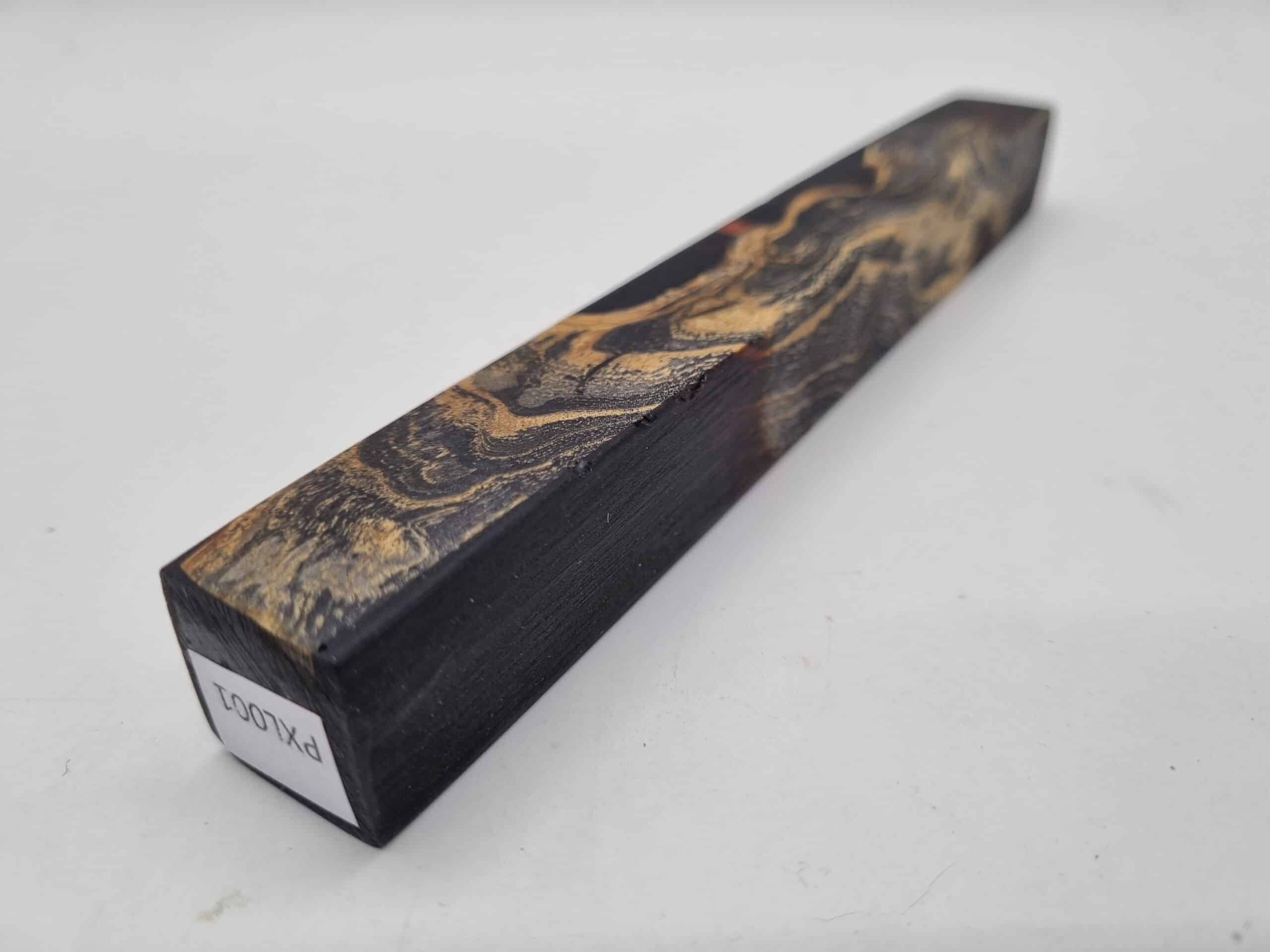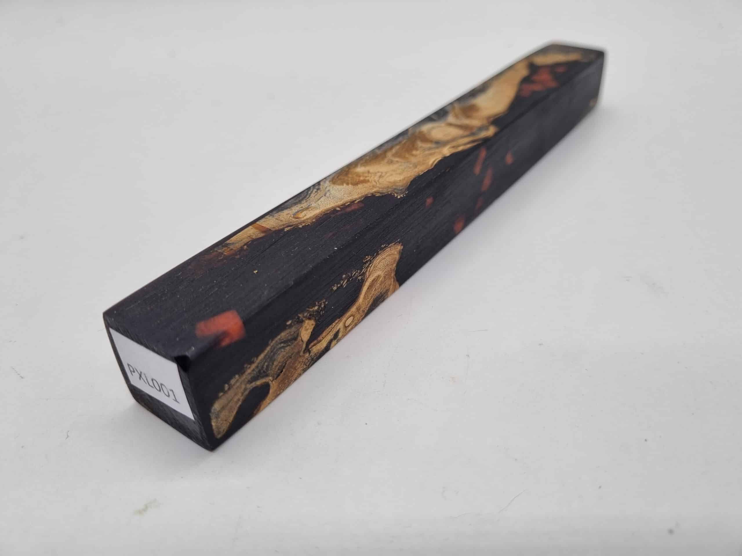 Penblank PXL001 gestockte Esche stabilisiert 21mm x 21mm x 180mm. Das Holz wurde vor dem gießen stabilisiert. Es wurden Epoxidharzstücke in der Farbe Kupferrot mit eingegossen. Beim Kauf erhalten Sie das abgebildete Stück. Im Shop finden Sie auch gutes Material für das Finish und geeignete Stiftebausätze.