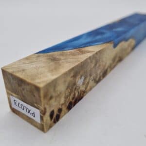 Penblank PXL073 Kastanie Maserknolle natur/blau 22mm x 22mm x 175mm. Das Holz ist stabilisiert. Beim Kauf erhalten Sie das abgebildete Stück. Im Shop finden Sie auch gutes Material für das Finish und geeignete Stiftebausätze.