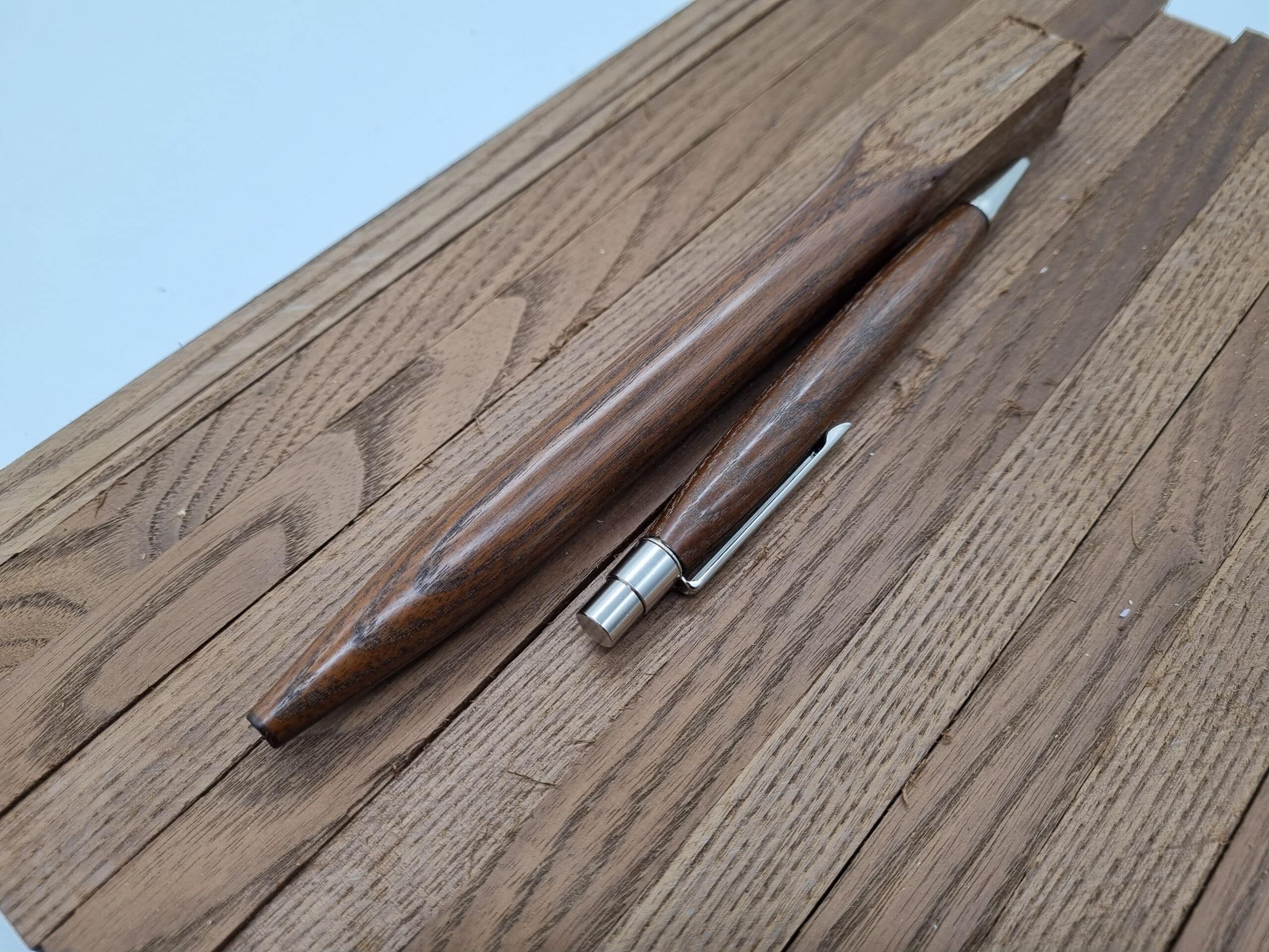 Penblank Thermoesche 18mm x 18mm x 120mm. Thermoesche ist ein durch Hitzebehandlung optimiertes Eschenholz. Während die heimische Esche aus Europa eine Dauerhaftigkeitsklasse von 3-4 hat, weist die Thermoesche die Klasse 1 vor. Thermoholz ist gut zu verarbeiten. Thermohölzer weisen eine enorm gesteigerte Dauerhaftigkeit auf. Während der Behandlung wird dem Holz seine Feuchtigkeit genommen. Deshalb arbeitet es nicht mehr und das Quell- und Schwindverhalten wird auf ein Minimum reduziert – das Holz wird hart und formstabil. Die besondere Trockenheit macht das Holz ebenso resistent gegenüber Pilz- und Insektenbefall. Im Shop finden Sie auch geeignete Stiftebausätze sowie auch gutes Material für ein perfektes Finish. Der Stift dient nur als Muster und ist nicht im Lieferumfang. Beim Kauf erhalten Sie ein Stück ähnlich in Farbe und Struktur.