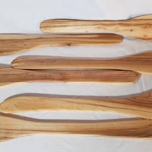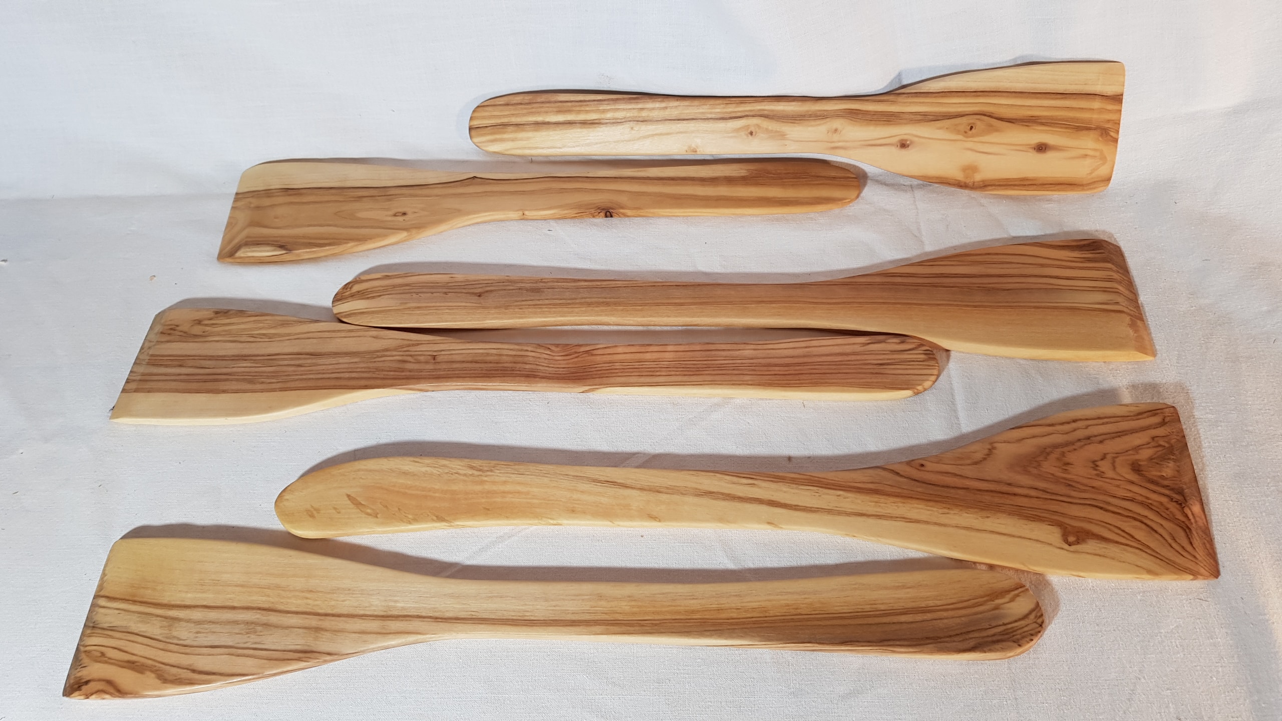 Pfannenwender aus Olivenholz Länge von 28cm bis 35cm. Oberfläche wurde mit Walnussöl versiegelt. Beim Kauf erhalten Sie einen Pfannenwender ähnlich in Farbe und Struktur wie auf dem Bild zu sehen ist.
