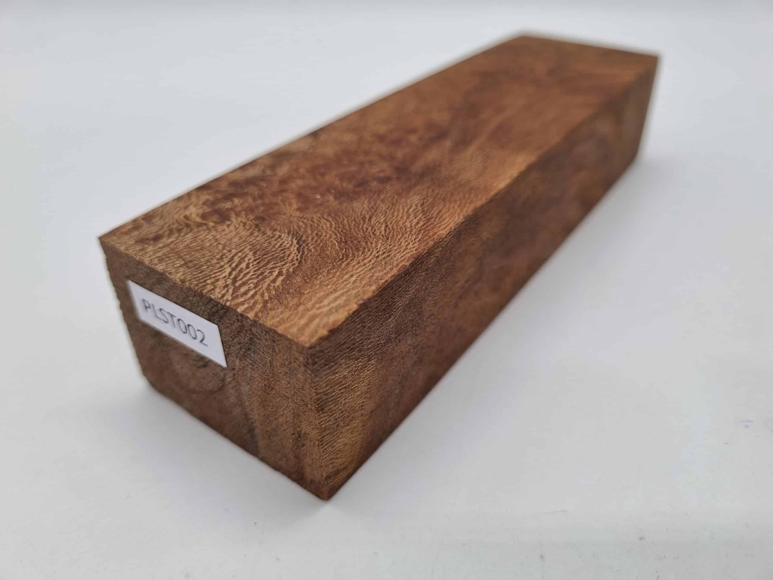 PLST002 Griffblock Platanenmaserknolle stabilisiert 42mm x 30mm x 140mm. Holz aus einer Knolle können Fehlstellen wie offene Maseraugen oder wuchstypische Risse enthalten. Diese kann man aber mit CA Kleber und Schleifstaub leicht füllen. Schleif-, Poliermittel und Finish ist auch hier erhältlich. Beim Kauf erhalten Sie exakt das abgebildete Stück.
