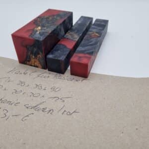 Rasierset 3tlg. Kastanie Hybrid schwarz/ rot. Dieses Set besteht aus 3 Kantel, deren Maße sind 1x 39mm x 39mm x 90mm und 2x 20mm x 20mm x 125mm. Dieses Set passt genau für einen Pinsel, einen Rasierer und für den Ständer. Für die perfekte Oberfläche finden Sie auch hier bestes Material. Beim Kauf erhalten Sie das abgebildete Set.