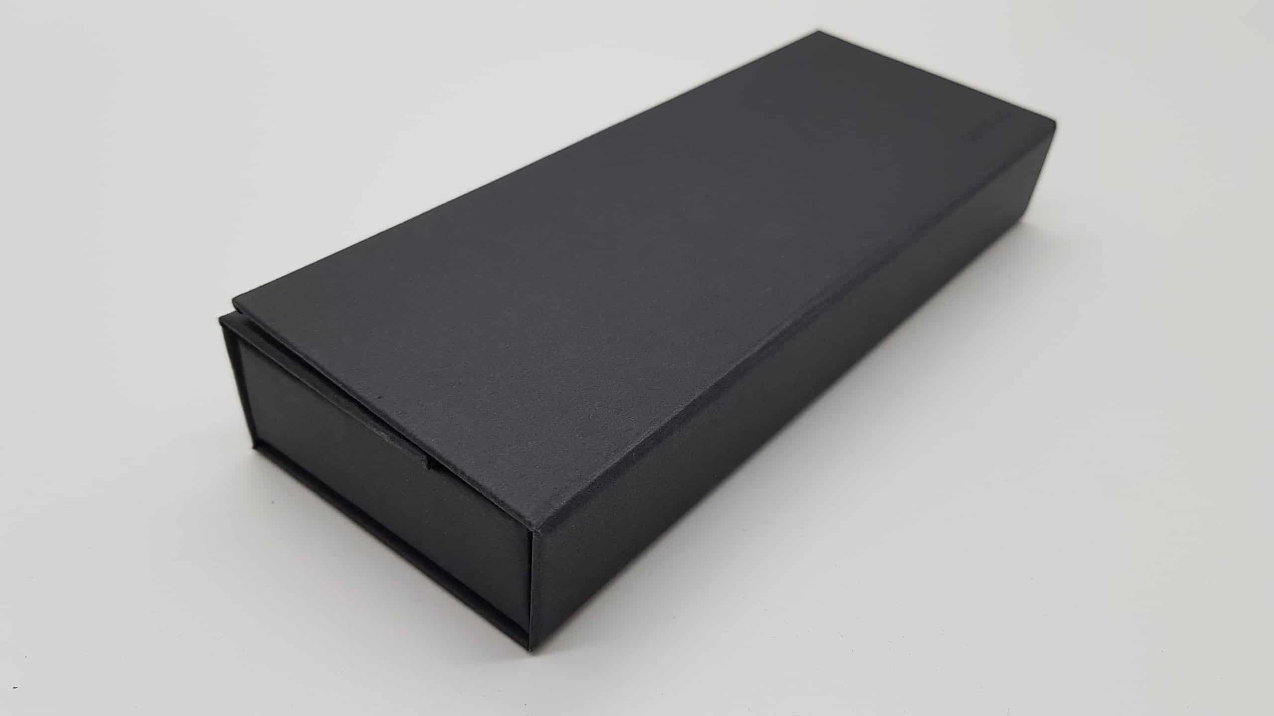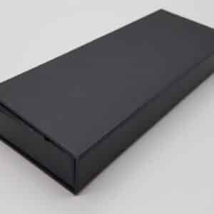 Stiftebox Etui schwarz Karton für 2 Stifte. In der Box ist Platz für schlanke, dünne Stifte bis zu einer Länge bis 14cm. Maße außen 16,5cm x 6,5cm x 3cm. Stift dient nur als Deko und ist nicht im Lieferumfang enthalten.
